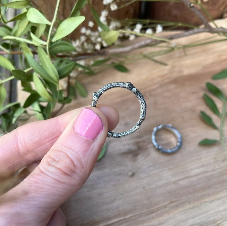 As each piece is crafted from an actual twig there may be slight variations to the shape and surface of each ring.