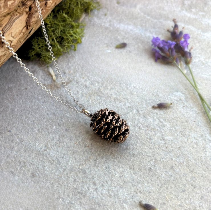 This enchanting and whimsical necklace inspired by woodland treasures is handcrafted in pink bronze from an actual miniature cone. Using the ancient art of Lost Wax Casting the natural alder cone is transformed into solid metal, capturing the intricate detail of this beautiful object.