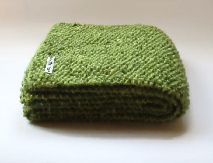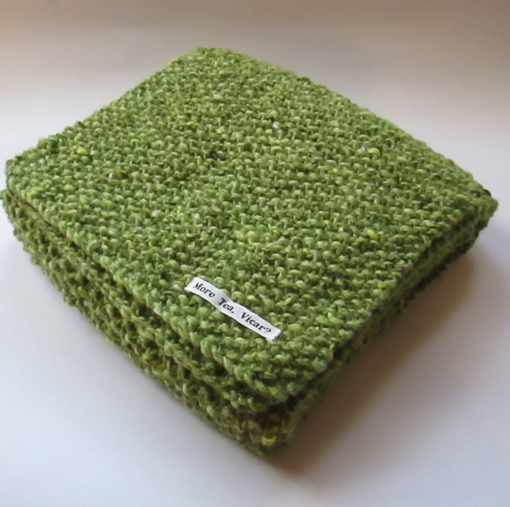 Lovely and warm this lime green Donegal Irish Aran Tweed Pure Wool Scarf is 138cm long and 23cm wide (56 inches by 9 inches). The wool has tweed flecks incorporated in the wool.