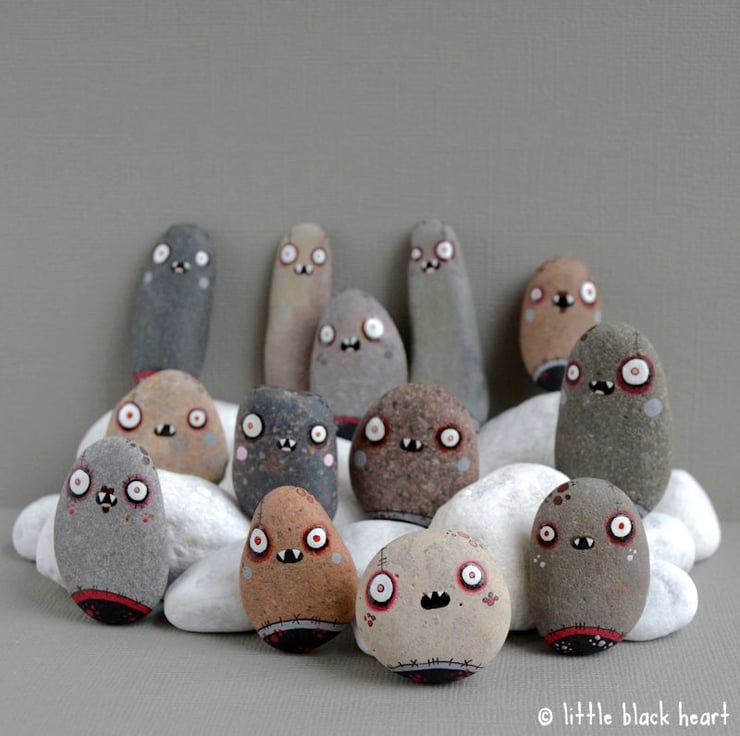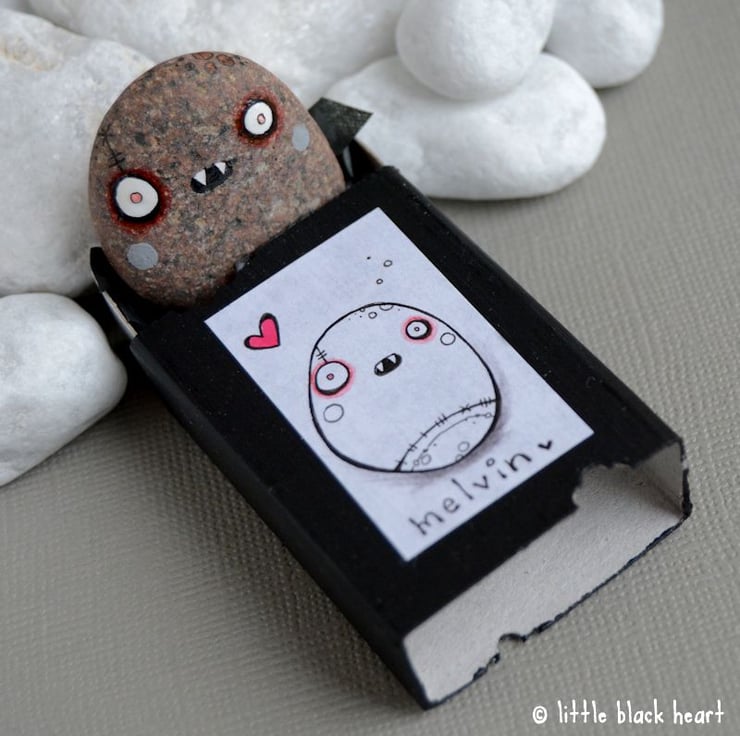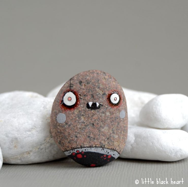 this is melvin. he used to be a regular rock, then he was a zombie rock. then he got bitten by a vampire, so now he is an evil vampire zombie rock! poor little fella. it's all gone wrong for him :(