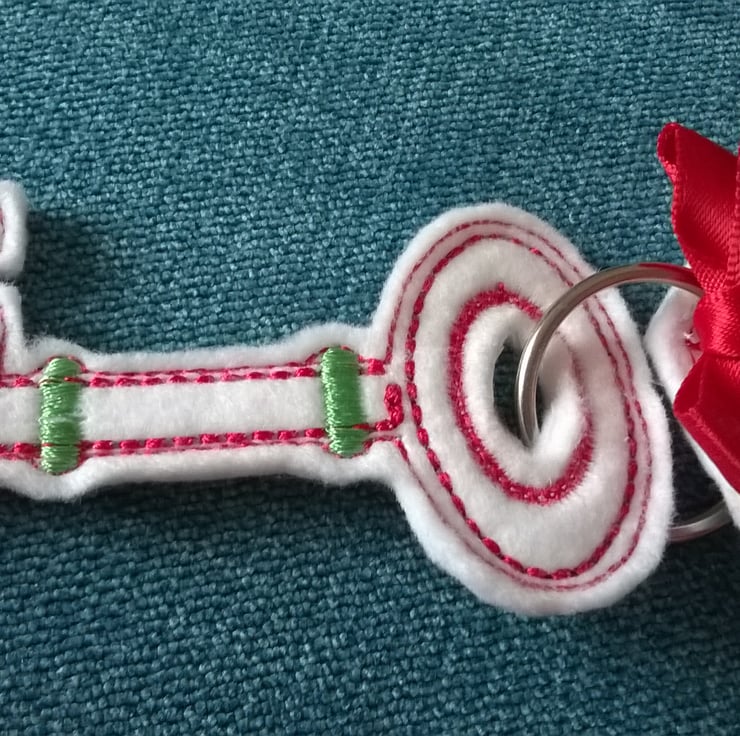 The key is attached by a split ring so it can be hung up in readiness for Santa! Topped off with a pretty ribbon bow (ribbon may vary slightly from image).