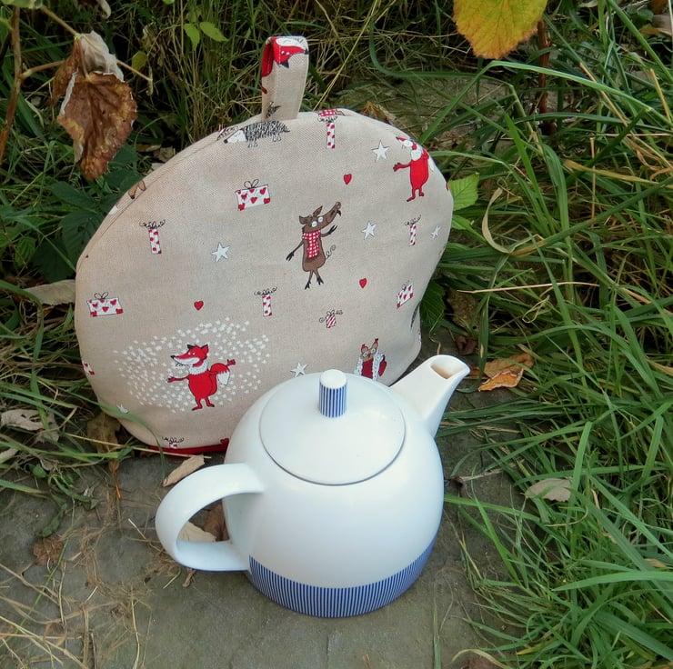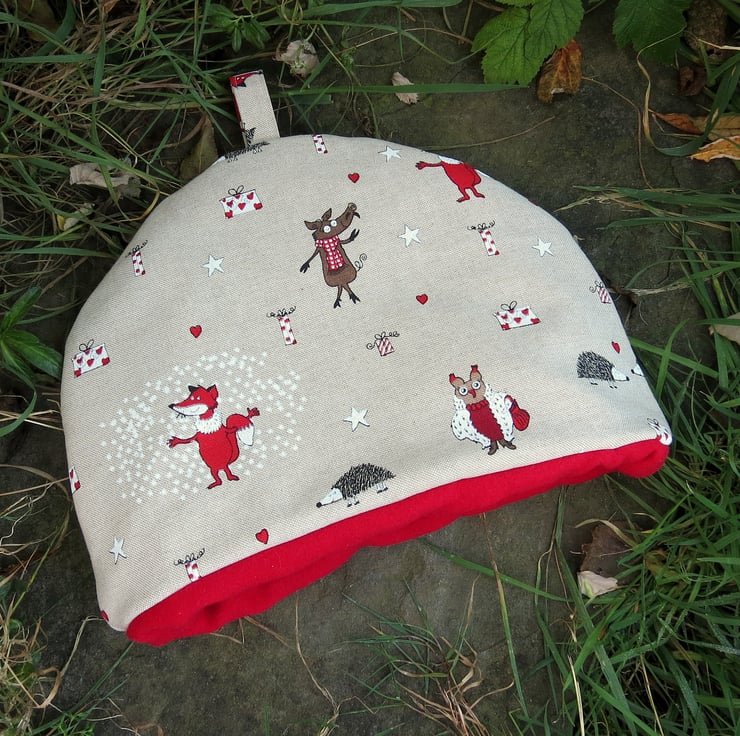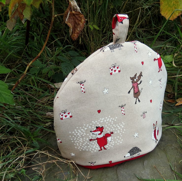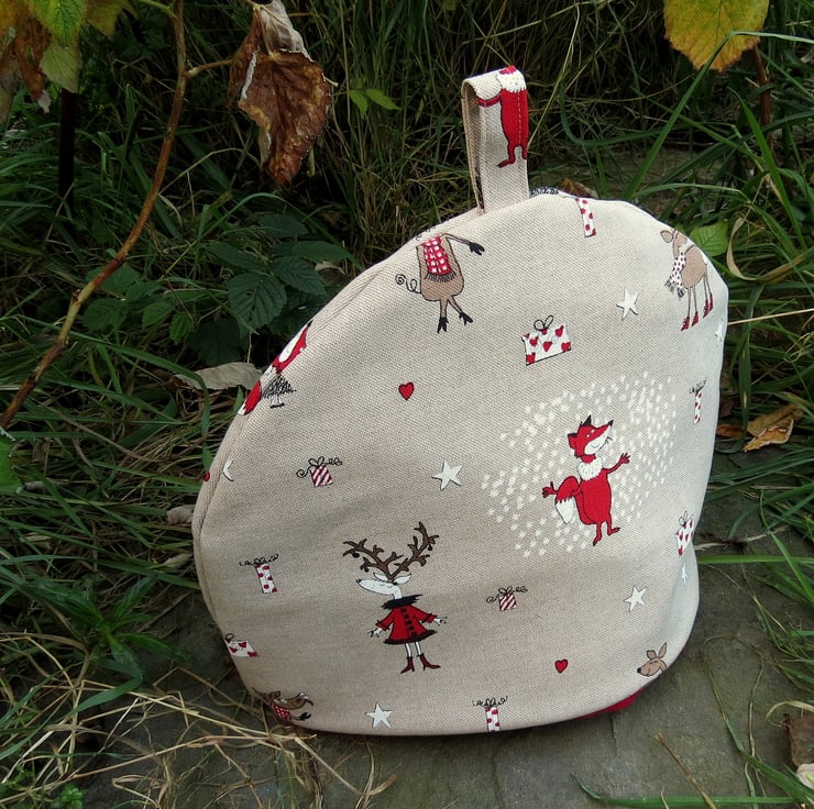 The fabric used is a linen look cotton with a whimsical Christmas design.