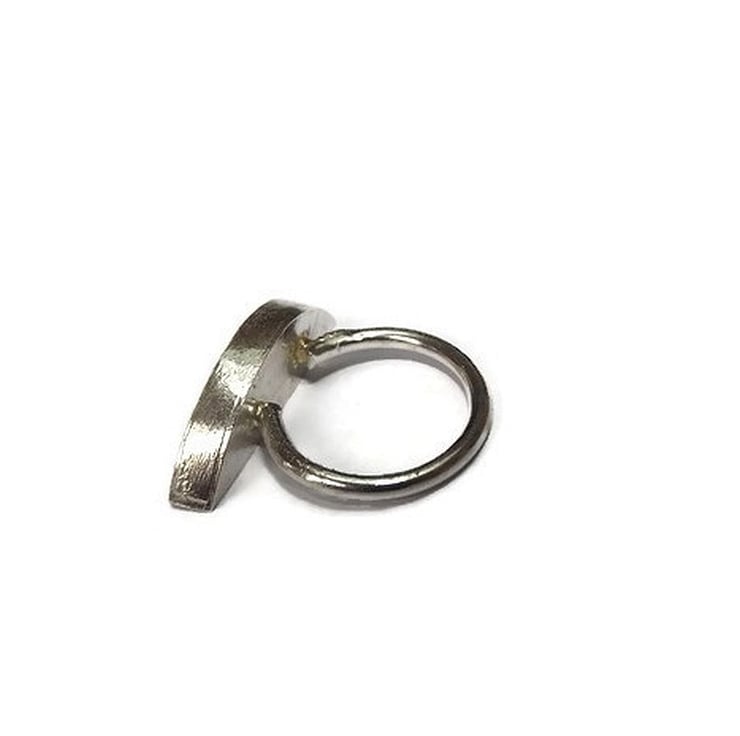 The semi circle is 2.8cm long, 9mm wide and 5mm thick. It sits on a size L ring shank which has been handmade from 2mm thick round sterling silver wire