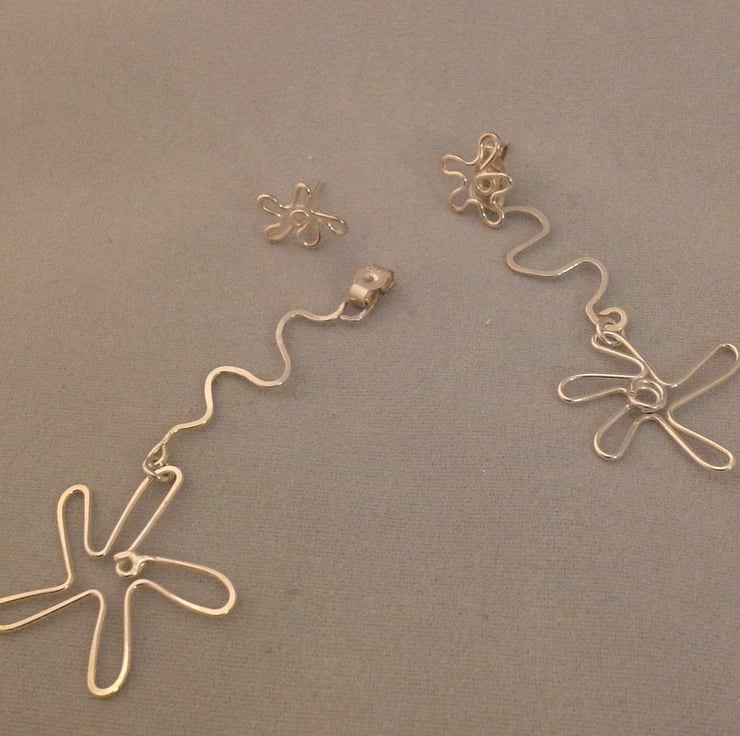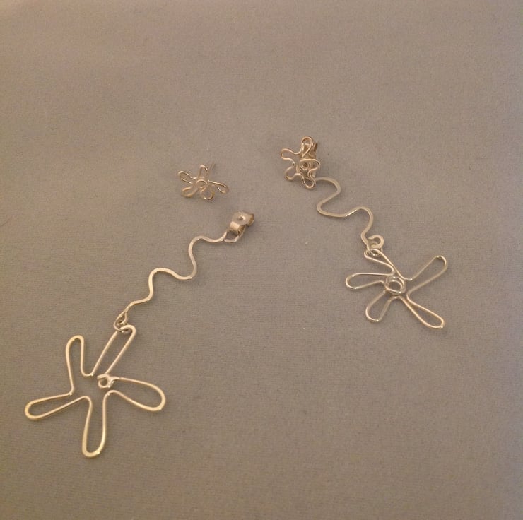 Sterling silver flower studs with rear wire stem detail.