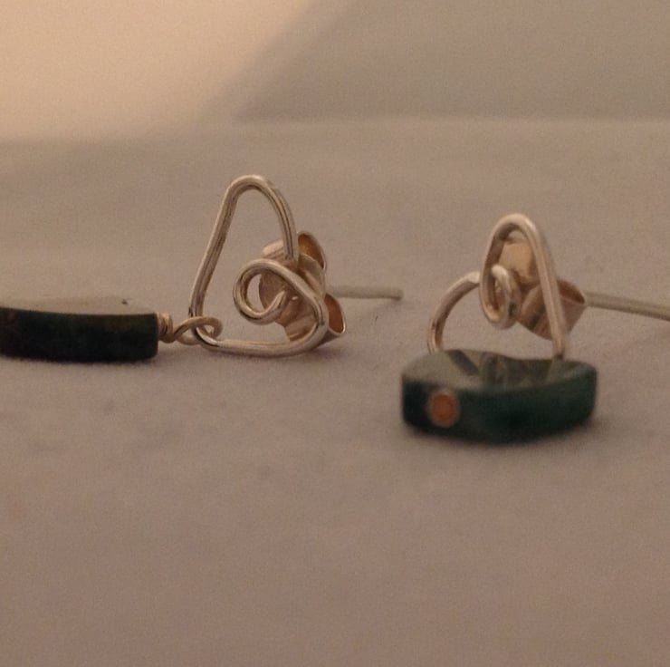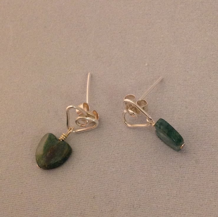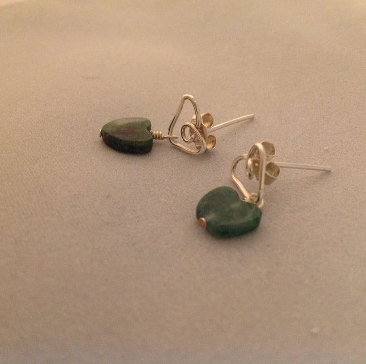Sterling silver heart earrings with green Jade heart shaped stones.