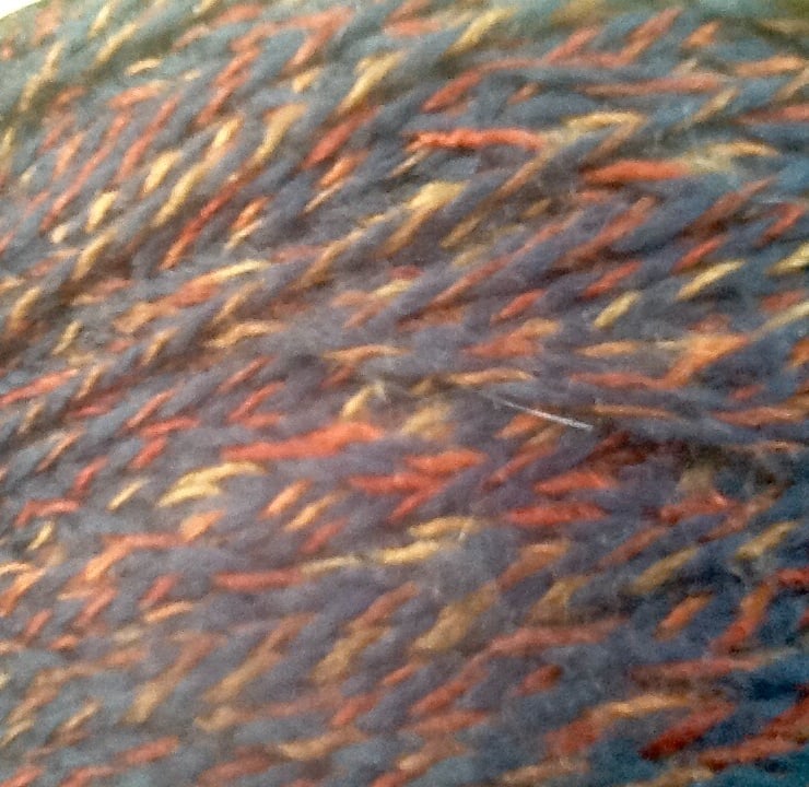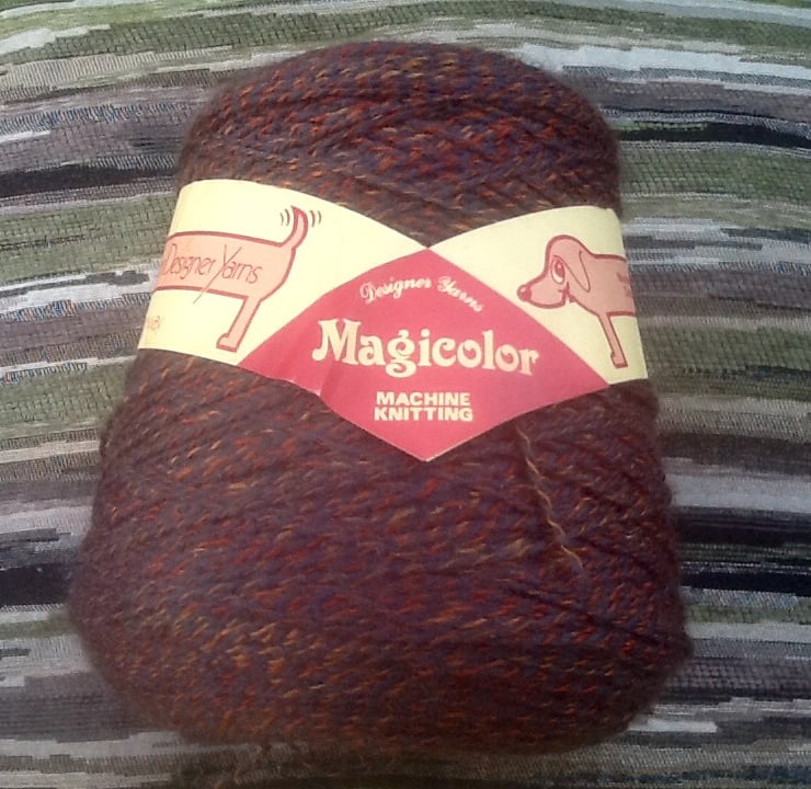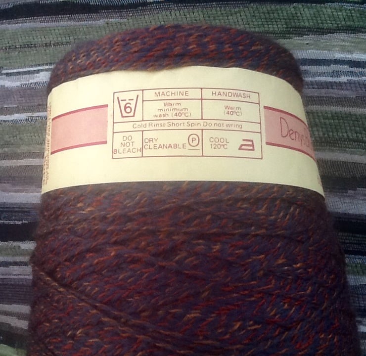 340g cone 100% Acrylic yarn, shade is Multi-tonal Brown with russet, Amber and blue shades, although difficult to pick up the subtle tones and shades in the photographs. This is for one cone of continuous yarn, 4ply, suitable for both machine and hand knitting or crochet projects.