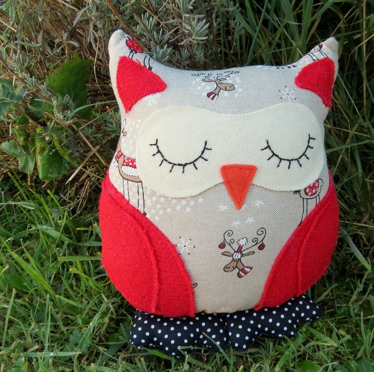 Marley is a festive owl cushion.