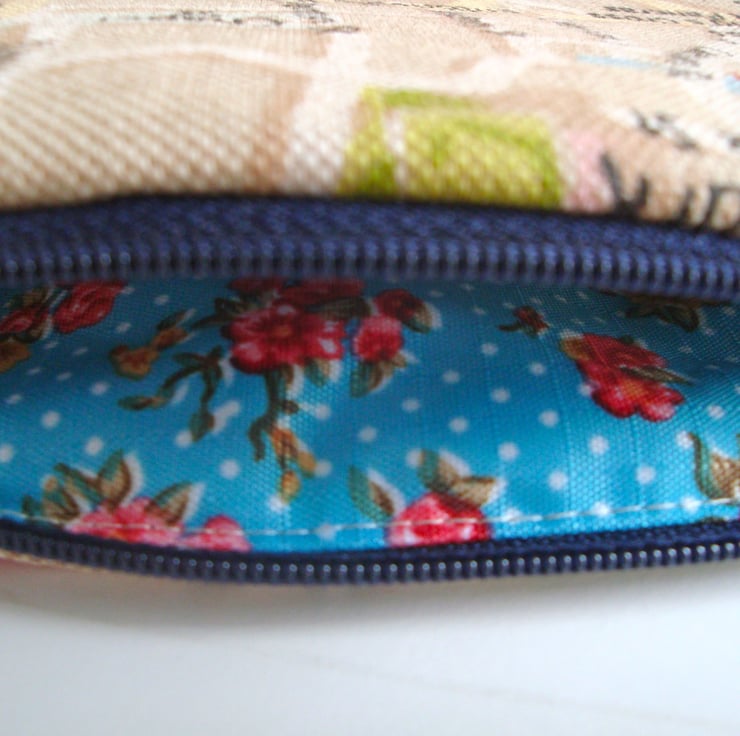 A lovely handmade zipper pouch , ideal for storing a selection of your beauty essentials - bits and bobs - gift bag - etc.