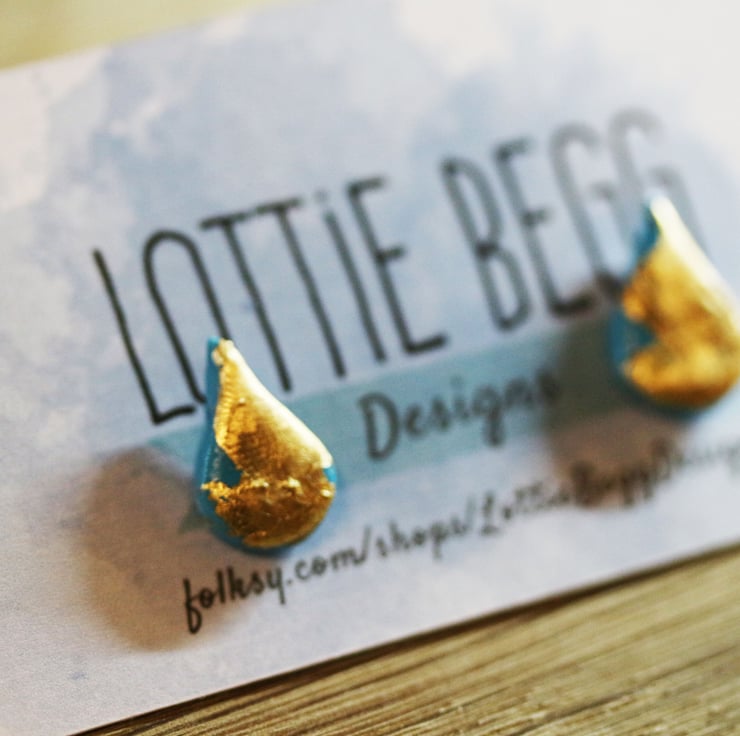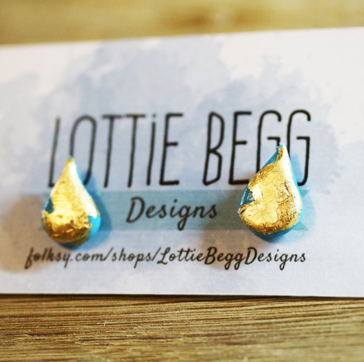Beautiful and bold earrings, created from polymer clay and gold leaf. The gold leaf is applied in delicate layers giving a vintage feel to the pair.
