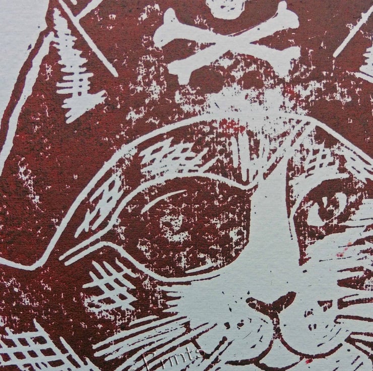 Hand printed on khadi handmade watercolour paper in dark red oil based ink.