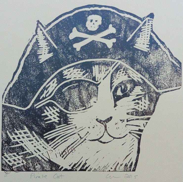Pirate Cat Open Edition Hand-Pulled Linocut Print