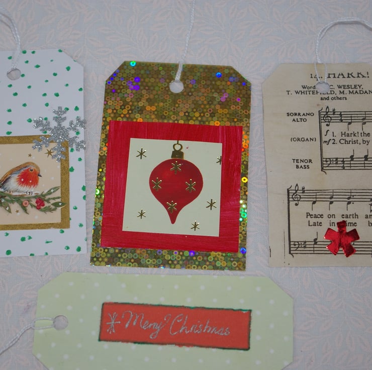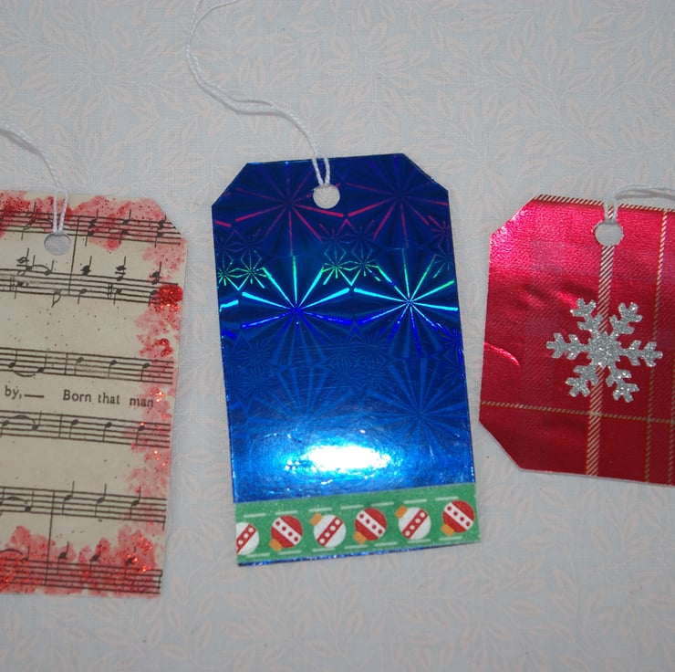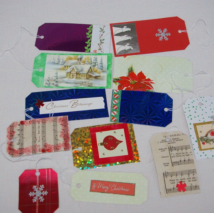 My love of Christmas and creating with recycled materials were my inspiration for these lovely Christmas gift tags.