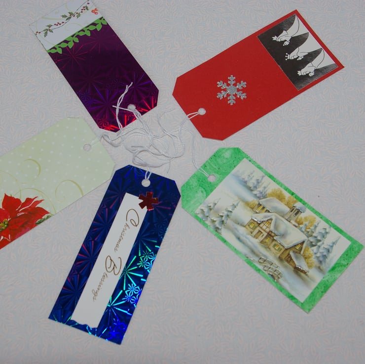 Each individual Christmas Gift Tag has a hole punched into the top into which a white cotton string has been attached.