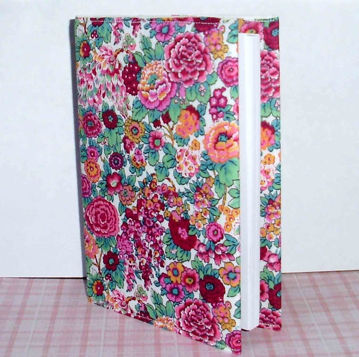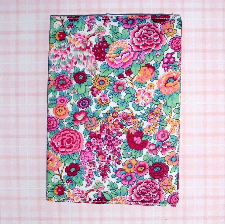 This is a very pretty A6 fabric covered notebook with lined paper.. (Approx 6x4 inches) It is covered in a pretty pink traditional Liberty print fabric. The cover is lined, interfaced and removable so that a new notebook can be added when required.