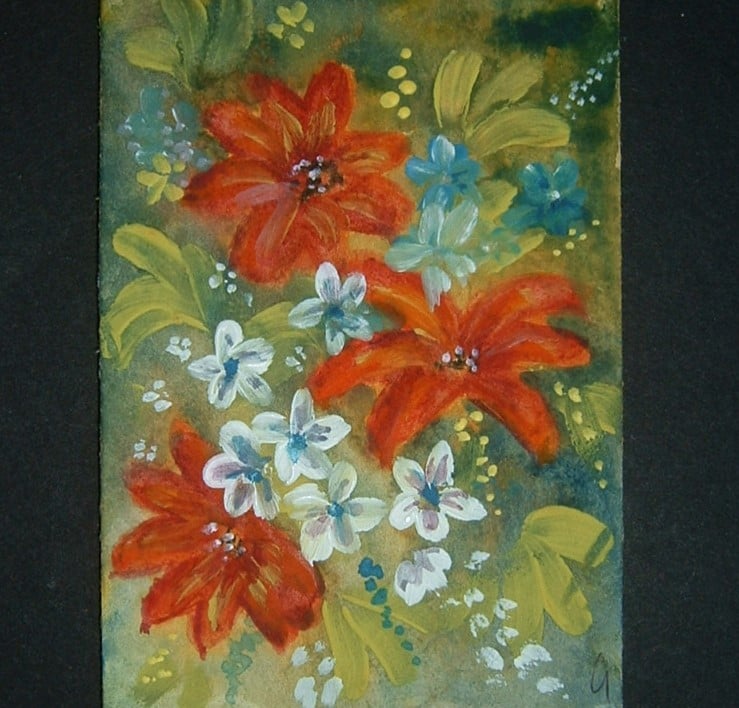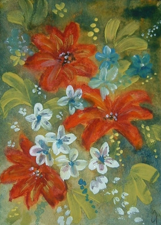 these beautiful red flowers have been painted using quality materials. Painted in watercolours and acrylic, it will come in a clear polybag to protect it.