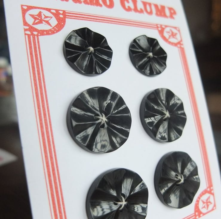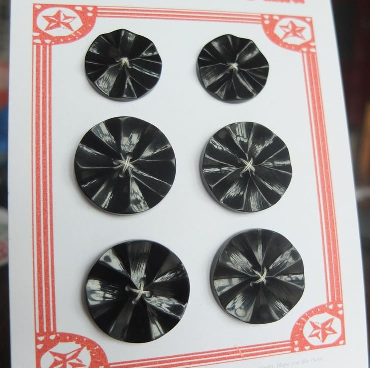 6 Vintage Black Buttons, lovely set of 2 x 22 mm and 4 x 27mm.