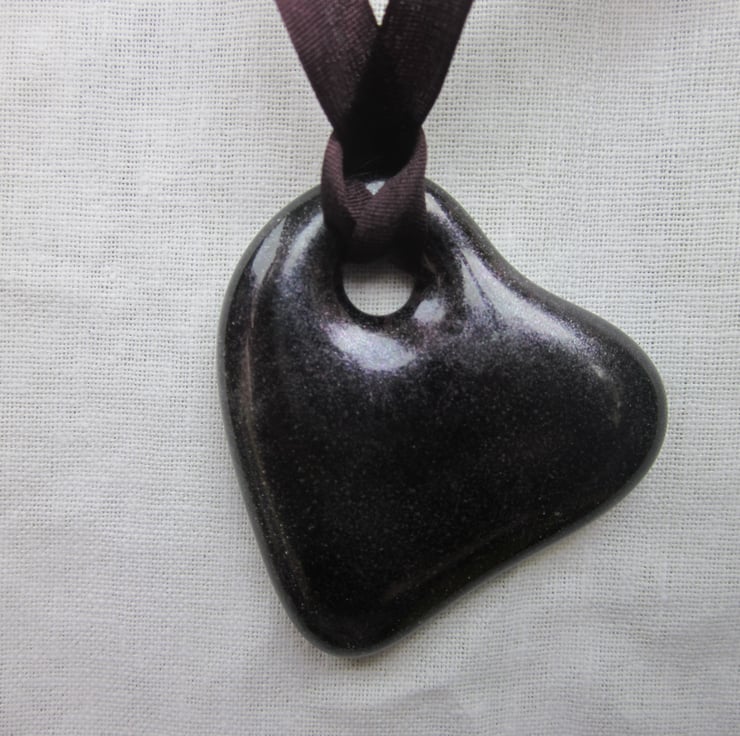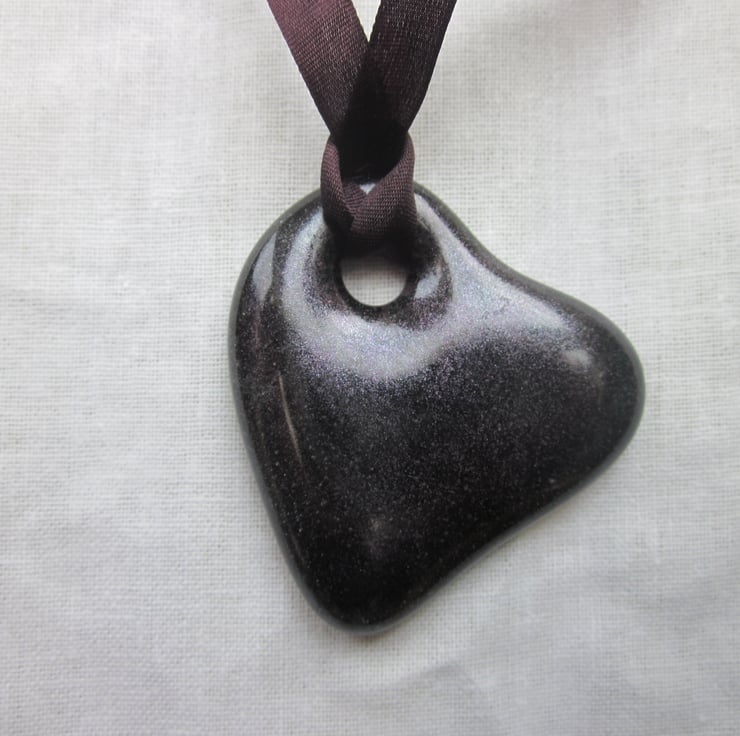 This pendant is tied with a hand dyed pure silk ribbon (courtesy of Hearty Craft) and also has a spare black cord for more informal daily wear.