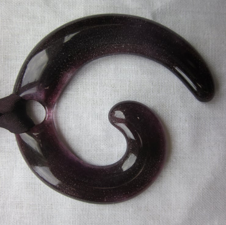It is a stunning ornament, with dark plum frit cast to appear almost black.
