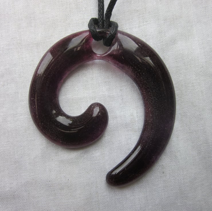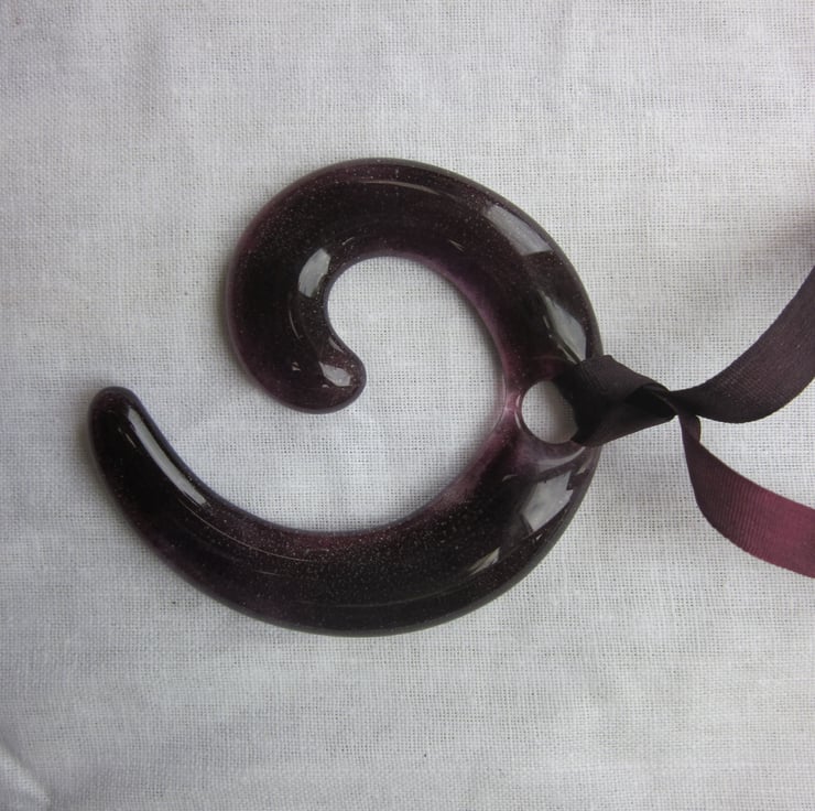 This pendant is tied with a hand dyed pure silk ribbon (courtesy of Hearty Craft) and also has a spare black cord for more informal daily wear.