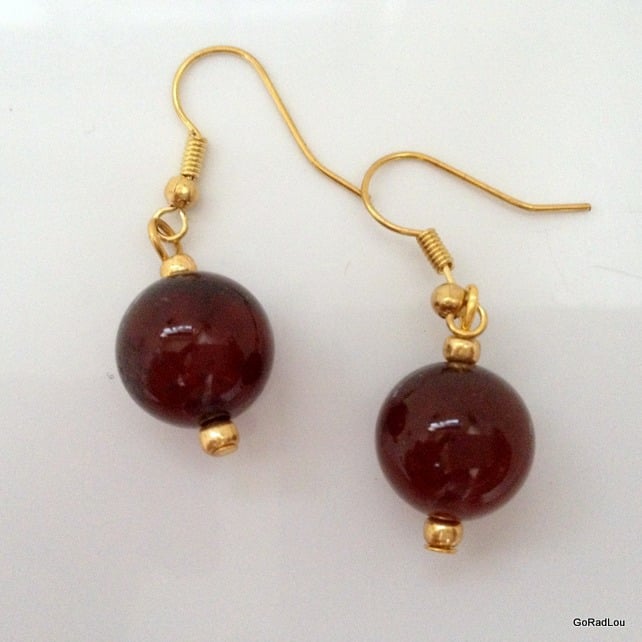 The matching earrings use a single agate between two of the seed beads and hang from gold plated ear wires. The drop of the earring is approximately 2.3cm from the bottom of the ear wire.