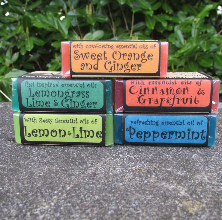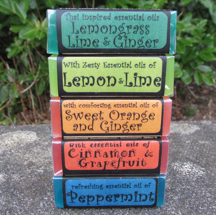Gorgeous set of five aromatherapy soaps, one 100g bar of each of the following;