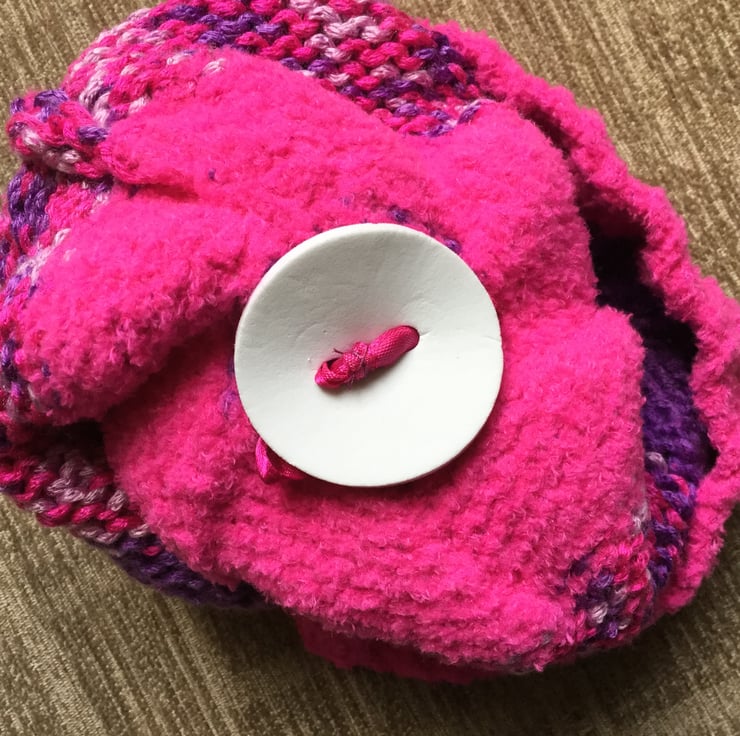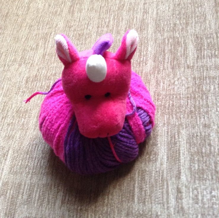 The hat is then topped with a cute 'Unicorn' head fastened inside with ribbon (please refer to photo) which has been double knotted and stitched for security the ends are tucked out of sight.