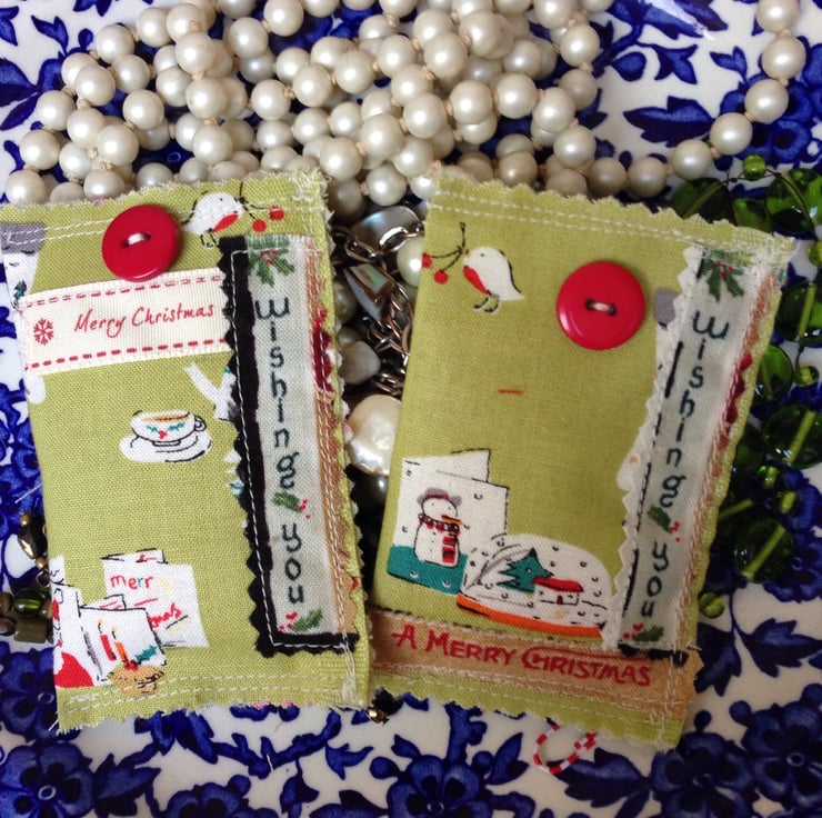 This listing is for two gingerbread scented bags which are embellished with a 'wishing you a merry Christmas 'message, and a vintage button.