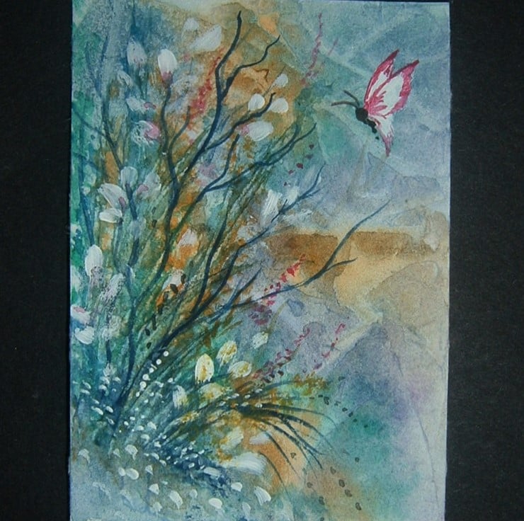An aceo is a miniature painting that measures just 2.5" x 3.5" and is highly collectable.