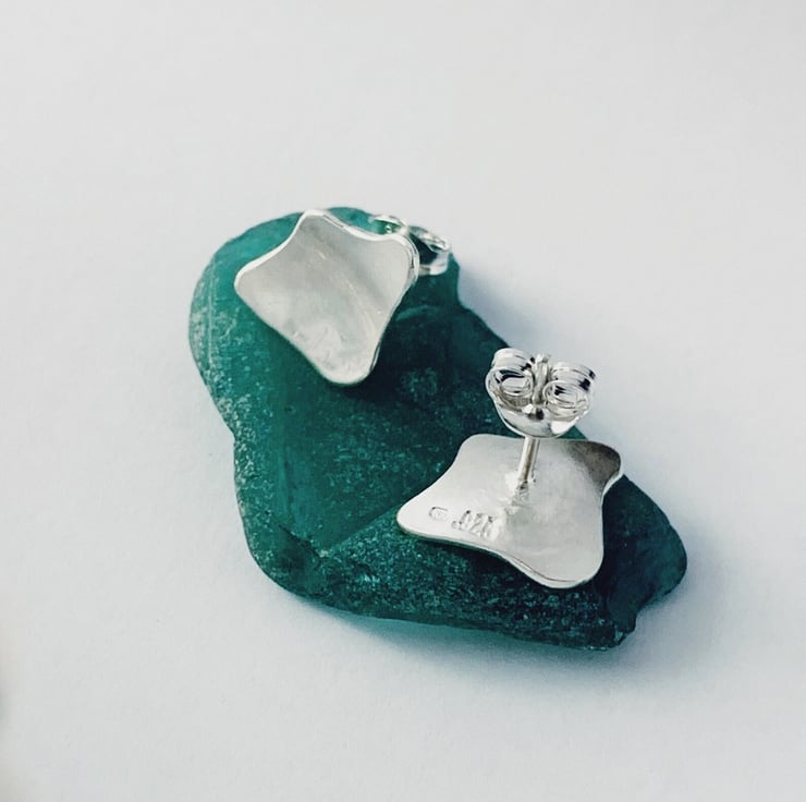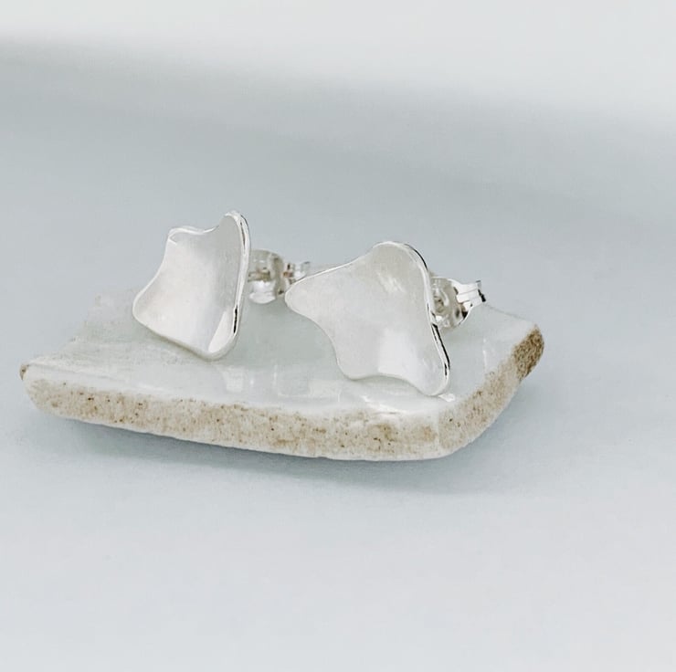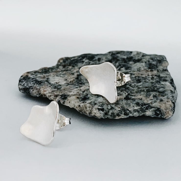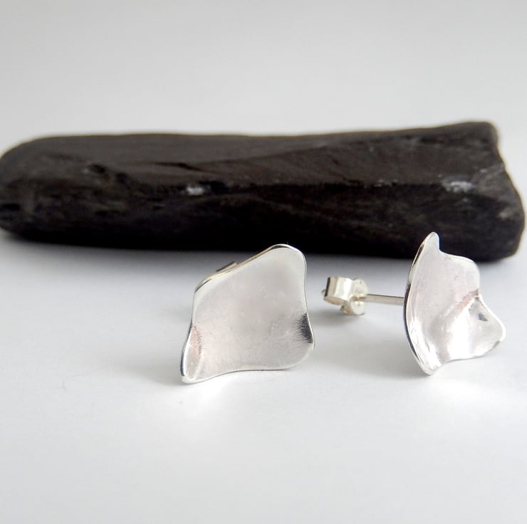 Handmade sterling silver abstract design stud earrings. Shape pierced out from sheet and slightly domed.