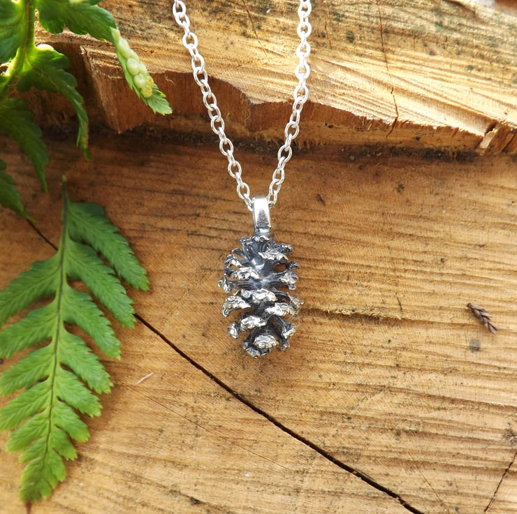 The pinecone is created using an ancient technique called Lost Wax Casting, which transforms a nature object into a solid metal replica. This intricate process means that every necklace is created from a different cone making each necklace completely unique.