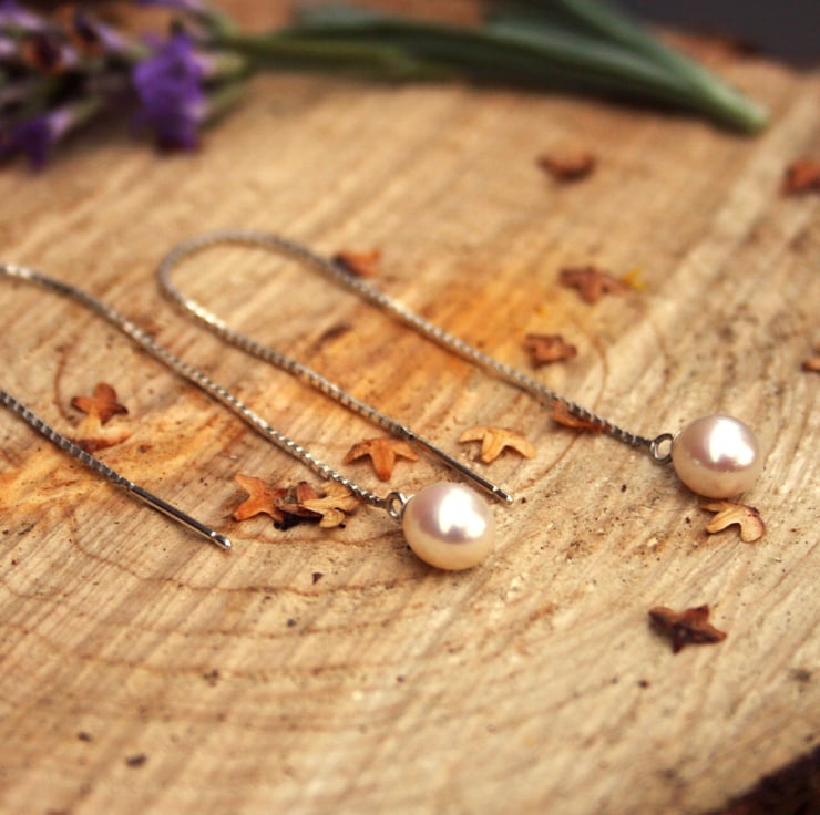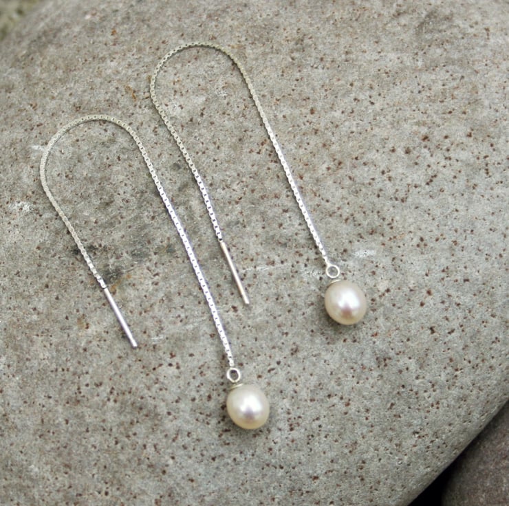 The Waterfall Pearl Earrings are handmade from 925 Sterling Silver chain and the highest quality freshwater teardrop shaped pearls.