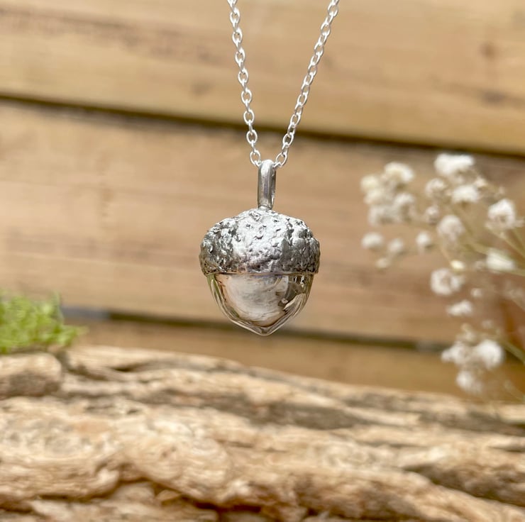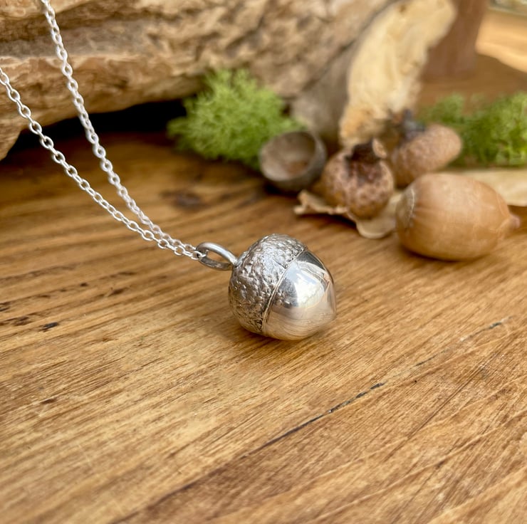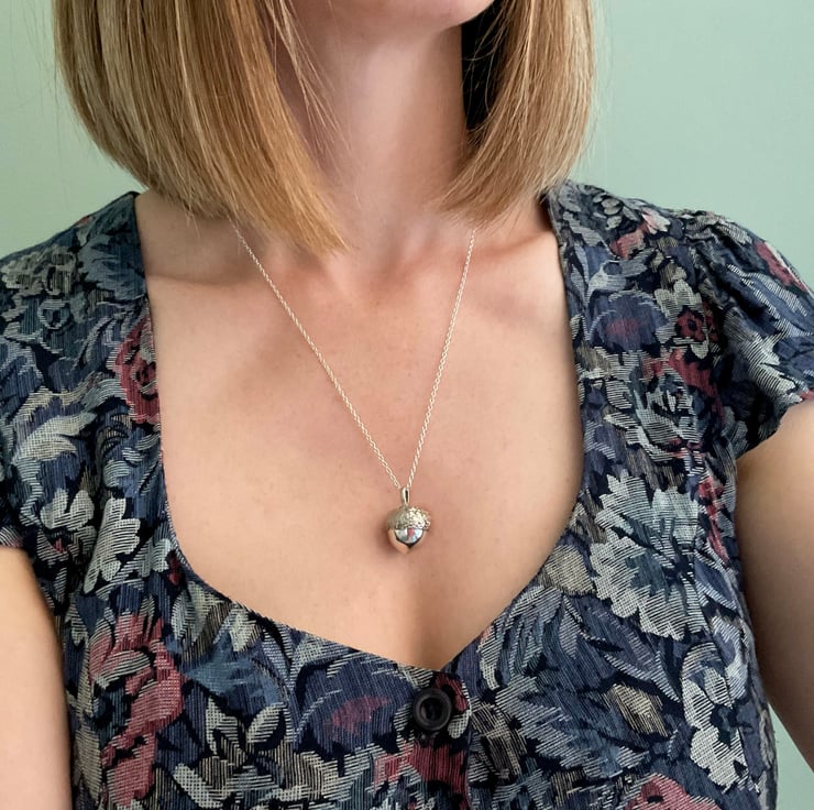 The Chunky Silver Acorn Necklace is handmade from .925 sterling silver in our UK studio.