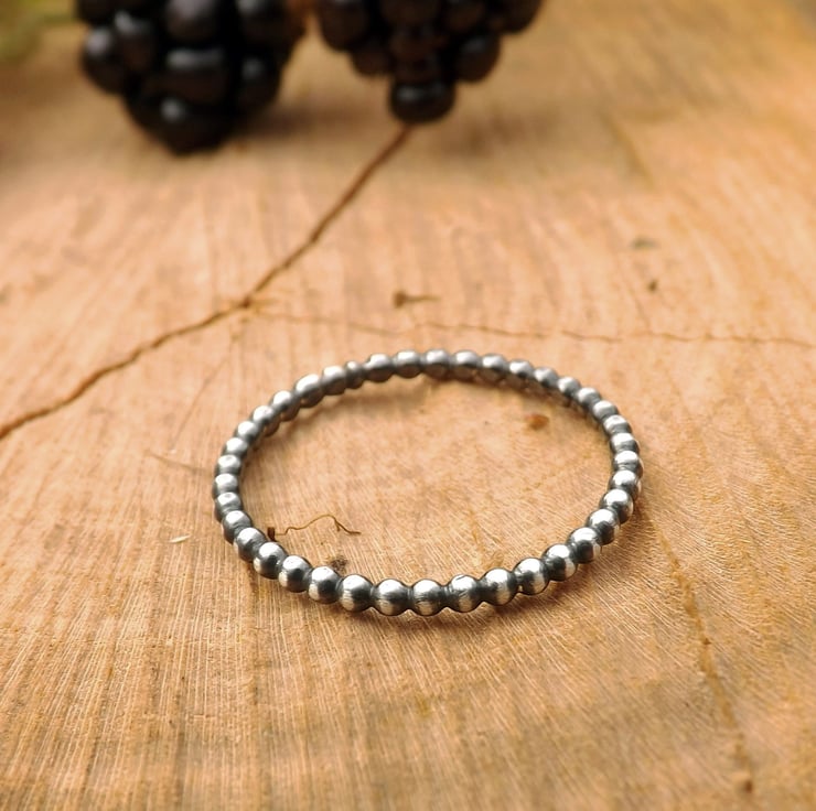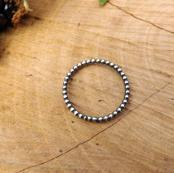 Inspired by blackberries, this stackable beaded ring is crafted from oxidised 925 sterling silver.