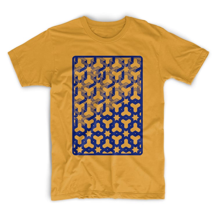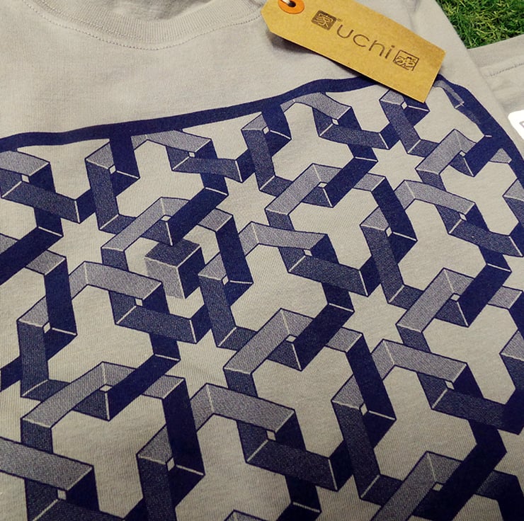I love geometry and mathematics and use a lot of geometric patterns in my work. This design is influenced by the Greek mathematician Euclid, who wrote the "Elements", a series of texts on geometry and number theory. I wanted to explore the x, y, and z coordinates, the 3 dimensions that make up the physical world. I lalso love the work of M C Escher and set about creating this transition from a simple repeating hexagon pattern to a seemingly impossible 3D cube structure that could not exist in real space. Or could it?