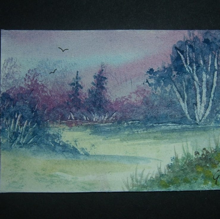 An aceo is a miniature painting that measures just.2.5" x 3.5" and is highly collectable.