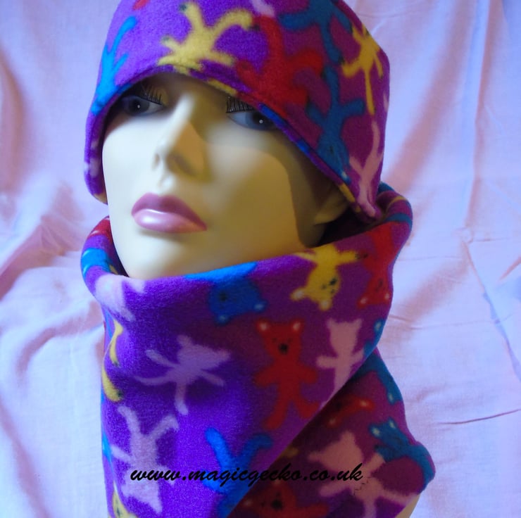 Beautiful Purple polar Fleece sporting a colourful Teddy Design
