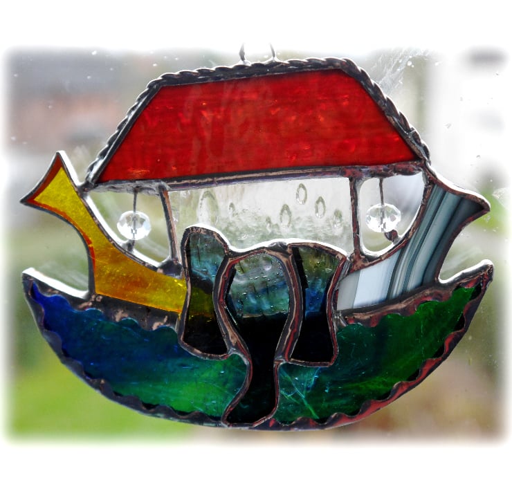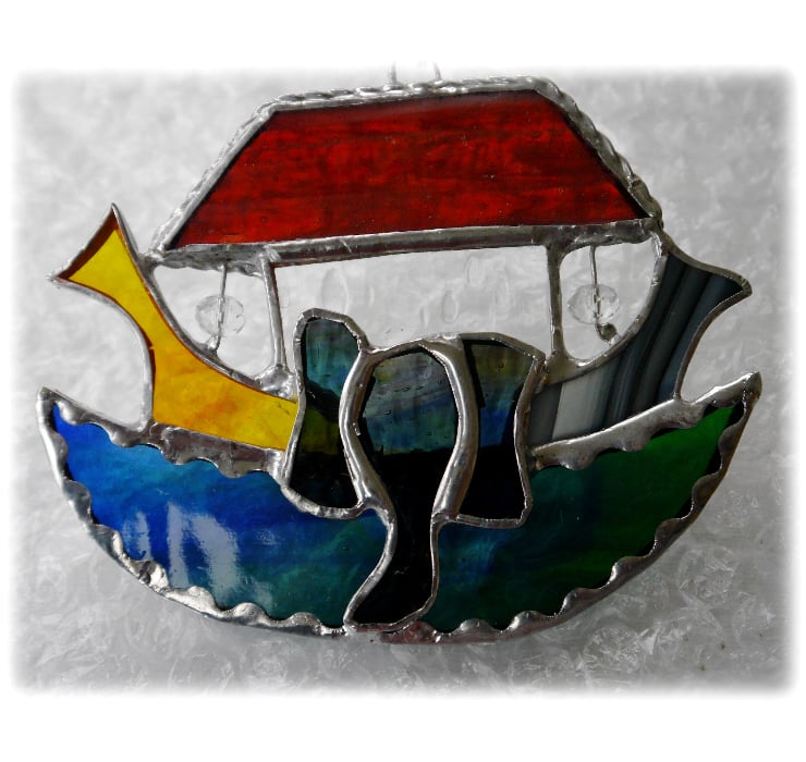 The Noah's Ark is 12cm long and 9cm high. It hangs from a little silvery chain which is securely soldered to the roof of the ark.