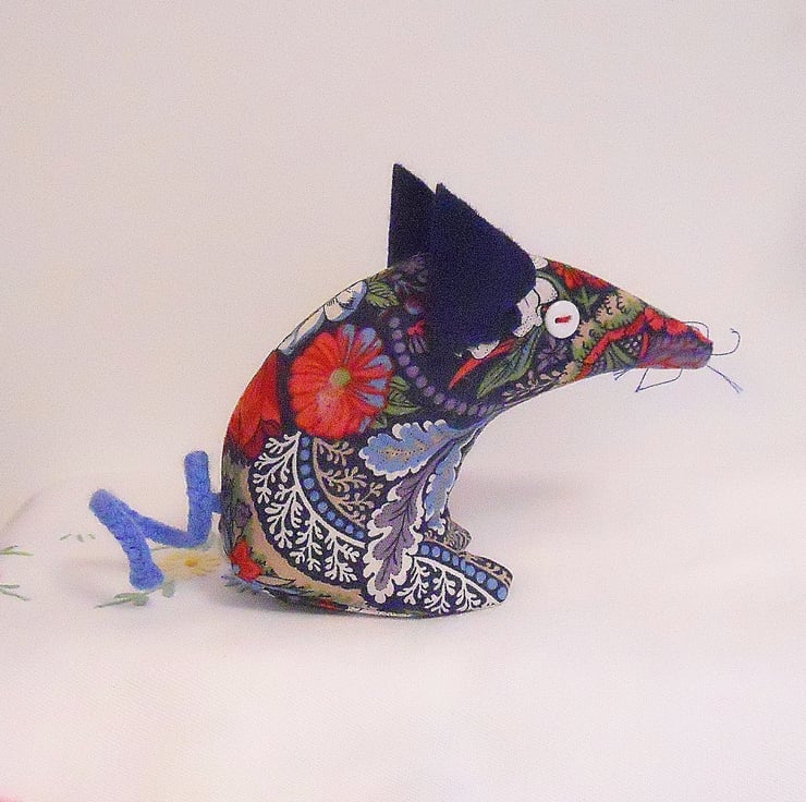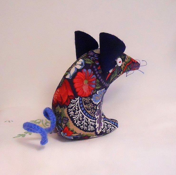 Retro 'tastic Mouse mouse has button eyes, felt ears and a plaited wool tail and cotton whiskers. He is approx 10cm tall from the tips of his toes to the top of his ears and approx 11cm from his nose to his bottom.