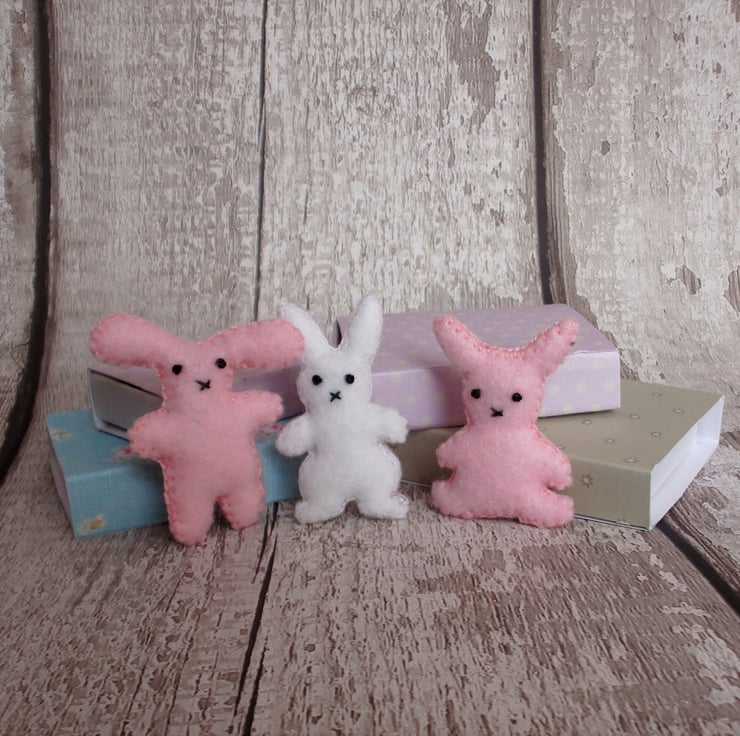 Felt plushies,rabbits and bears, toy animals,matchbox,stocking filler