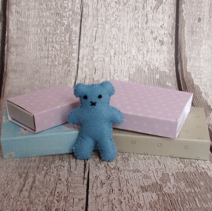 Made from quality felt with blanket stitch edging and finished with little bead eyes and each animal comes with their own little matchbox.