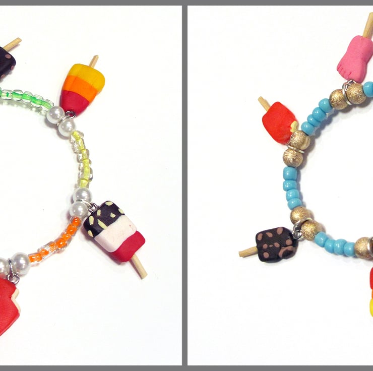 A gorgeous take on the classic ice lollies charm bracelet, with the theme of "Tropical colours" or "Classic Blue".