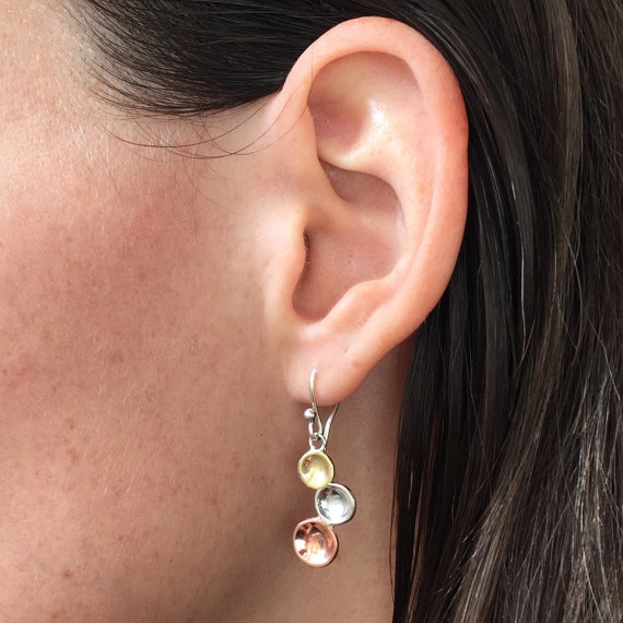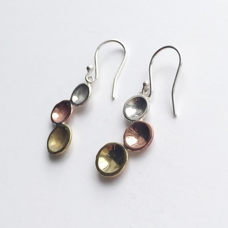 M A T E R I A L S : Sterling silver, brass and Copper, Highly Polished. All earrings have a sterling silver post and back.