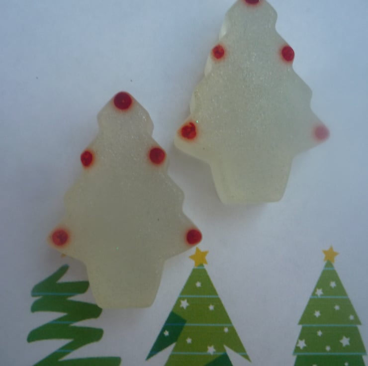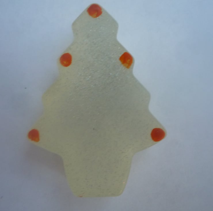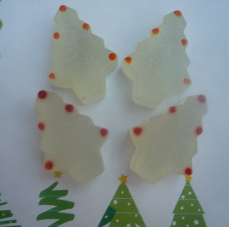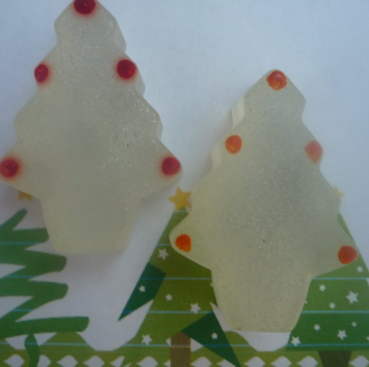 lovely glitter Christmas tree soaps, made with clear glycerine with a cosmetic glitter, in a cinnamon fragrance.
