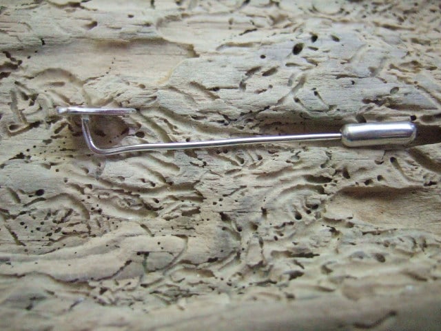The pin measures approx 5cms in length and 1cm at its widest part and weighs 3 grams with the end cap.