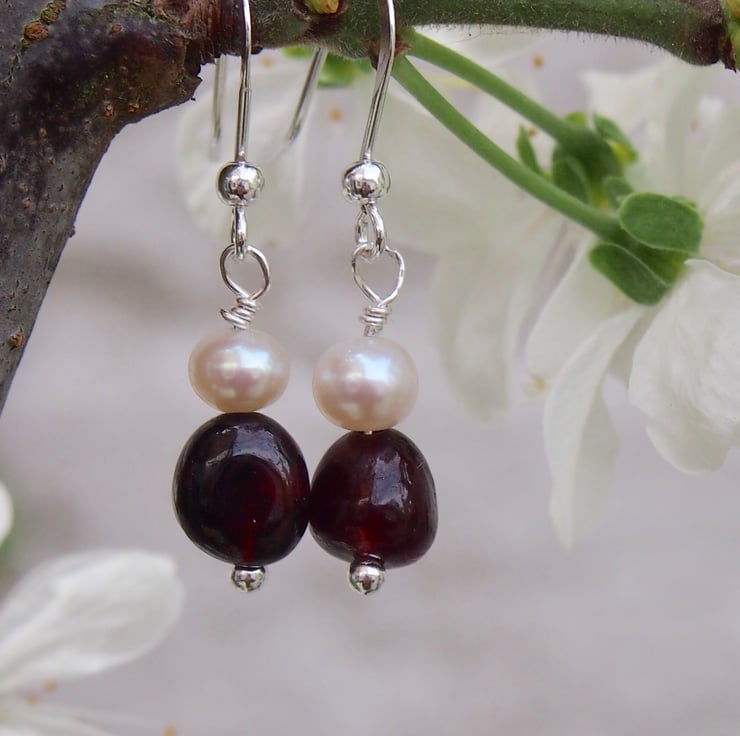 Garnets are an ancient stone, famed for their curative and protective powers. In the language of gems, garnets indicate loyalty, unchanging affection and grace, so they were often used by the Victorians in engagement rings. My crystal reference book says "Carry garnet when it seems you will never achieve your goal. It brings hope and the power to succeed in hopeless situations." Pearls are traditionally a symbol of feminine power, so this should be a good combination!