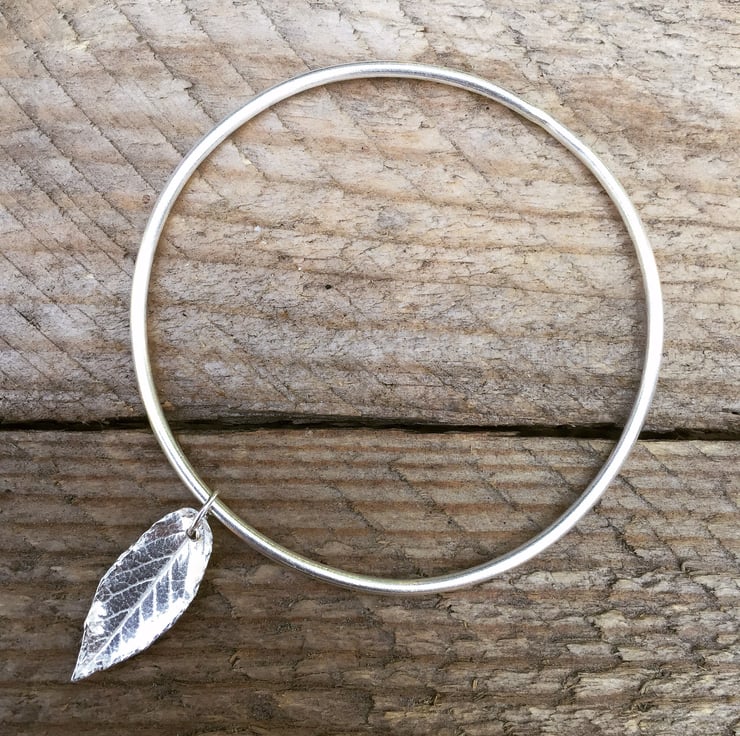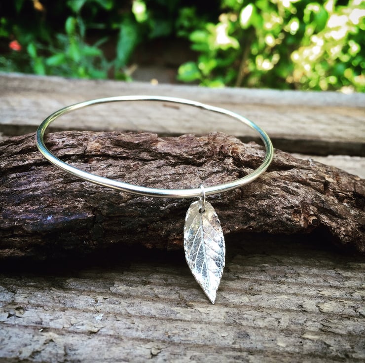 The leaf charm is an inch long and cast from a real rose leaf into solid silver.