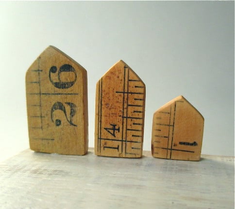The 3 tiny windswept beach huts are hand cut from vintage rulers and show faded numbers, and the wonky wire heart has been hand twisted into shape.