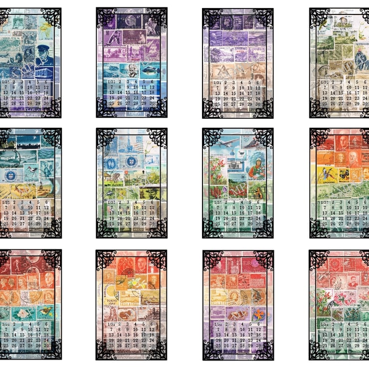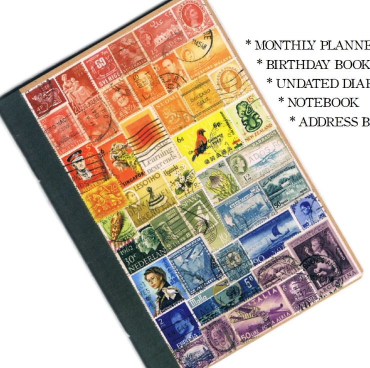 Each double page spread includes a print of a different TangleCrafts postage stamp collage, options to mark date & month, plus a segmented line which can be used for notes or checklists/to do lists etc. There are 12 spreads so can easily be used as a monthly planner (starting in whichever month is convenient to you), or why not use as a birthday book? Alternatively, simply use for whatever notes you like!
