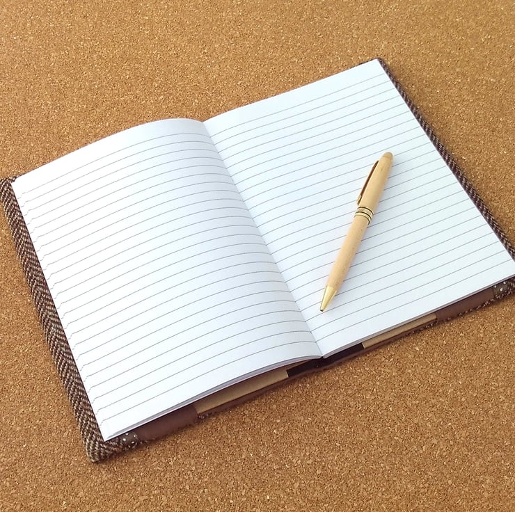 - an A5 size notebook which has lined pages.