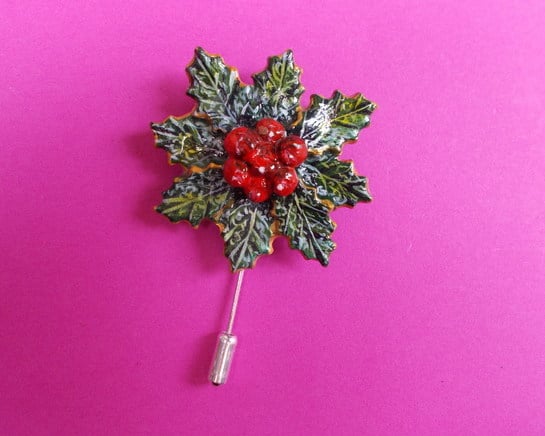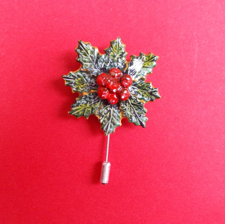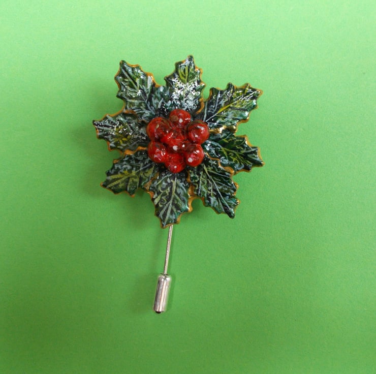 You are looking at a variation of one, of my most popular Christmas Designs. A great Brooch to wear for Work or at a Festive Party or gathering- The HOLLY & RED BERRIES STICK PIN- Lapel Flower Pin